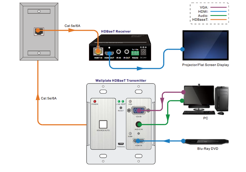 KanexPro 4K HDMI & VGA Wall Plate Transmitter Over HDBaseT™ Features